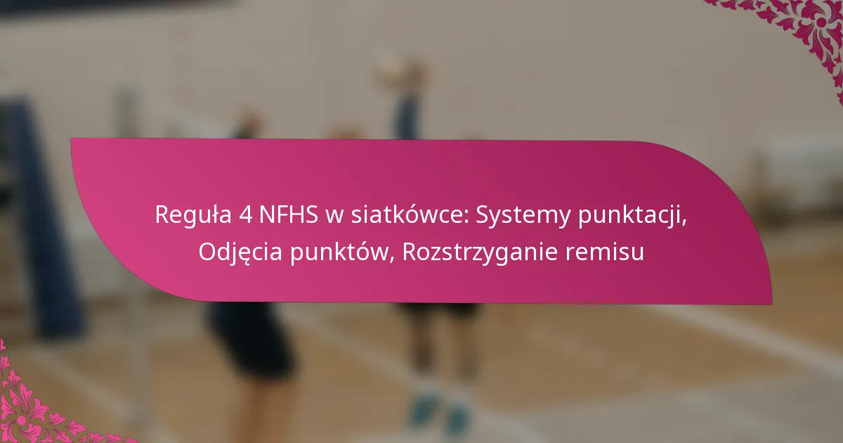 Reguła 4 NFHS dotycząca siatkówki określa systemy punktacji stosowane w siatkówce w szkołach średnich, koncentrując się głównie na punktacji rally oraz tradycyjnych metodach. Zrozumienie tych systemów jest kluczowe dla zawodników, trenerów i sędziów, ponieważ bezpośrednio wpływają na wyniki meczów i strategie.