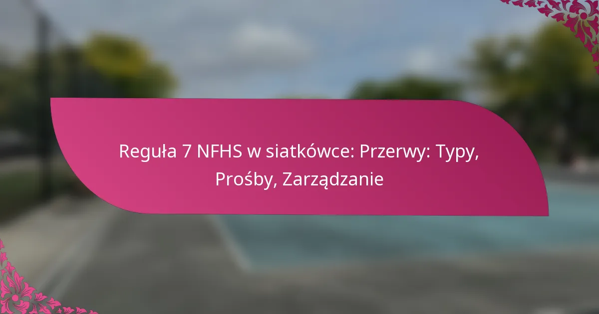 Reguła 7 NFHS w siatkówce określa różne rodzaje przerw, jak można je wnioskować oraz ich zarządzanie podczas gry. Zrozumienie tych aspektów jest kluczowe dla efektywnej komunikacji w drużynie i wdrażania strategii podczas meczów.